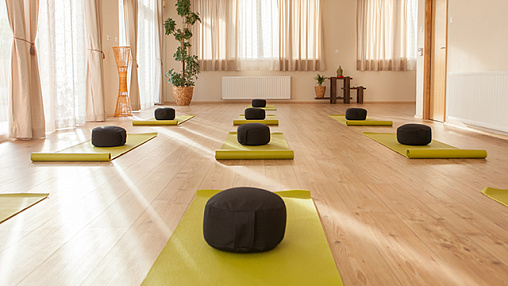 На первых стадиях используются различные вспомогательные материалы (пропсы): кирпичи, ремни, валики и другие приспособления, которые нужны для отстройки анатомически верного положения тела в асане.